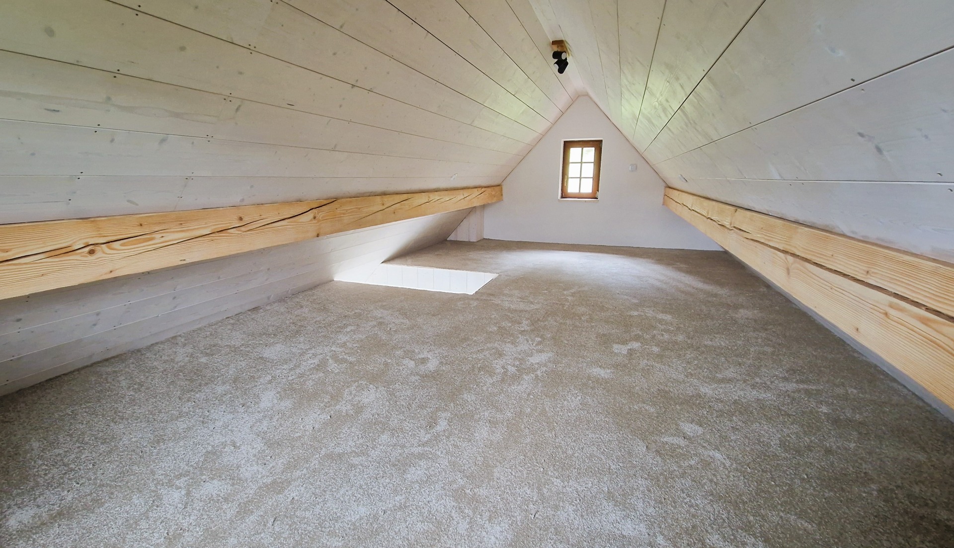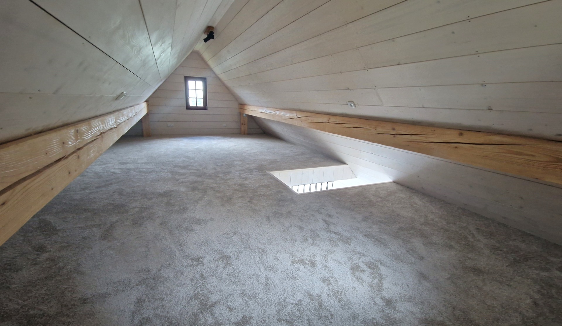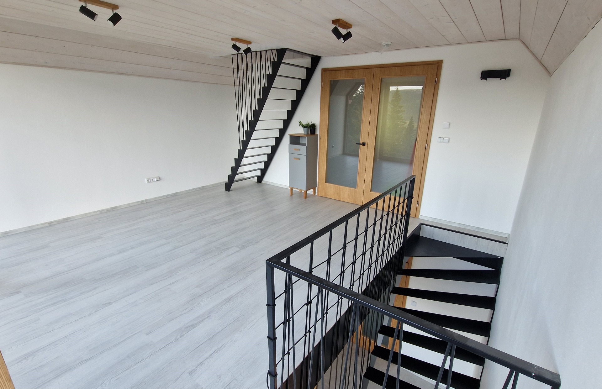 Do podkrovní ložnice vedou takové schody, které zvládnou praví horalové (schodo-žebřík, není pro malé dětičky), ale za to krásné spaní pod dřevěným krovem to jistě stojí. V prostoru ložnice se vyspí 4 osoby, někdy 4 a dítě, postele si můžete variabilně přisunout nebo vytvořit uličku. Je tu 3x lůžko 80x200 a 1x 120x200. Pokud je vás více, je v obývací části možnost spaní pro dvě osoby na plnohodnotném samostatném lůžku.